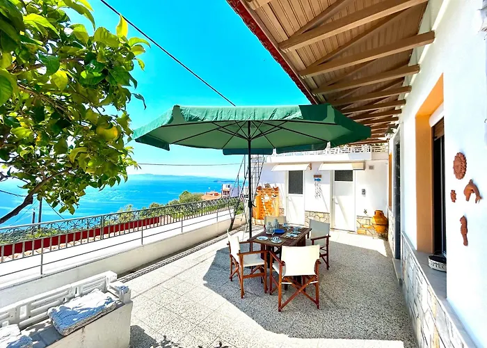 Deze 1-slaapkamer Bluesunnyparadise Glossa villa heeft een terras en ligt op 3 km van Agios Ioannis Beach.